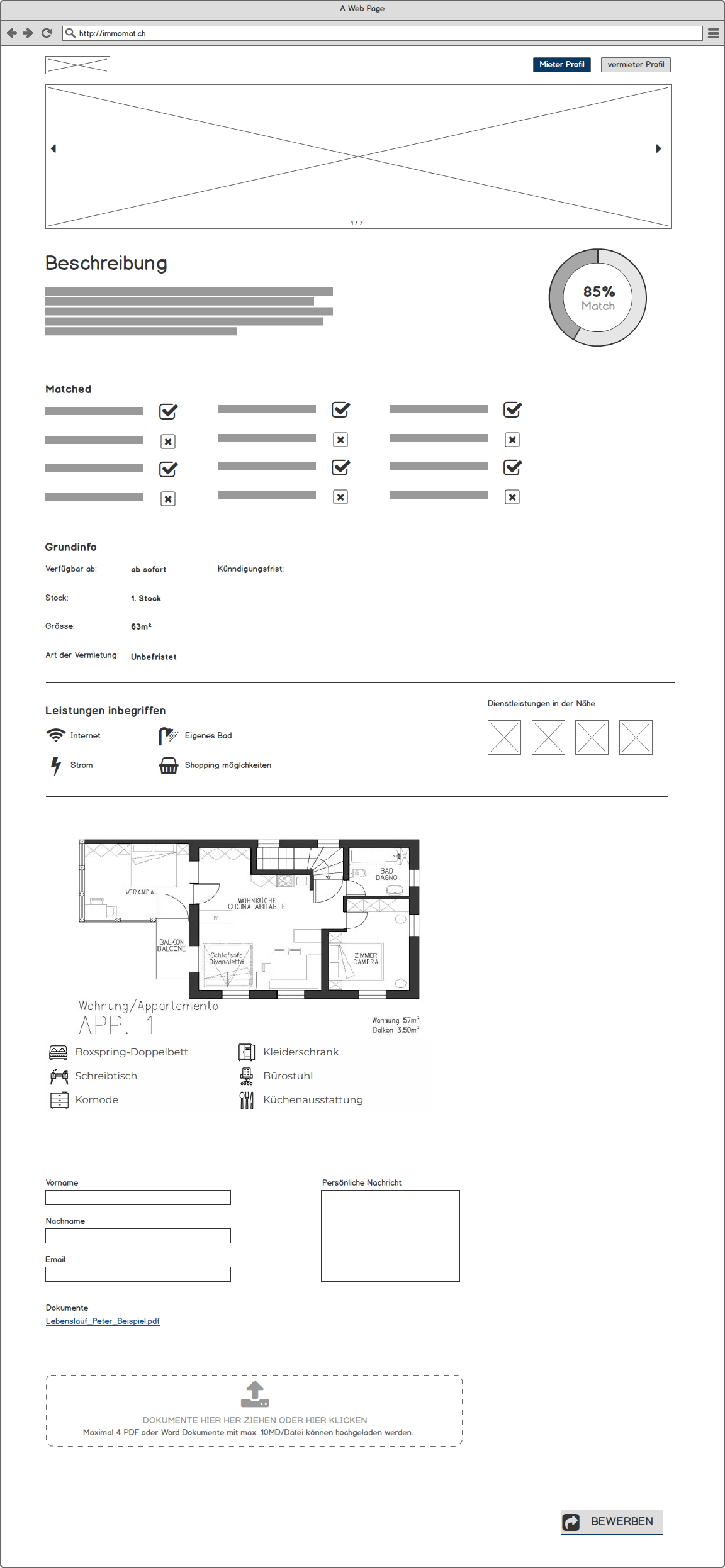 The following Project focuses on the start-up company MatchYourHome AG, which will simplify and innovate the real estate search landscape. With the help of the key trends, market and competition analysis it was discovered that the current market participants in the sub-market "Rental" only use a match function to a limited extent and a user database (tenant pool) is not available. In addition, the analysis of user requirements, carried out by the team showed that there is a need for these two services. MatchYourHome online platform, is a real estate marketplace that aims to bring supply (landlord) and demand (renter) together quickly and easily. The platform's match function distinguishes itself from the competition primarily through its transparency. A detailed list shows at a glance which criteria of both sides are fulfilled and which are not. Furthermore, the user database represents an innovative solution approach, since landlords can proactively approach potential tenants. with This approach the current problem of housing vacancy, with the aim of reducing it are being addressed.